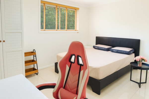 We have a master bedroom available in a freestanding clean house. The house is furnished and located in a quiet area and next to a park with plenty of car spaces.