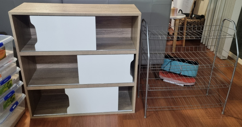 나무신발장은 무거운 MDF로 만들어졌고 가로세로 1m 정도입니다. 슬라이딩으로 열리고 블랙 또는 화이트 컬러로 앞뒤 전환 가능합니다. 깨끗하게 사용하였고 아주 좋은 상태입니다.