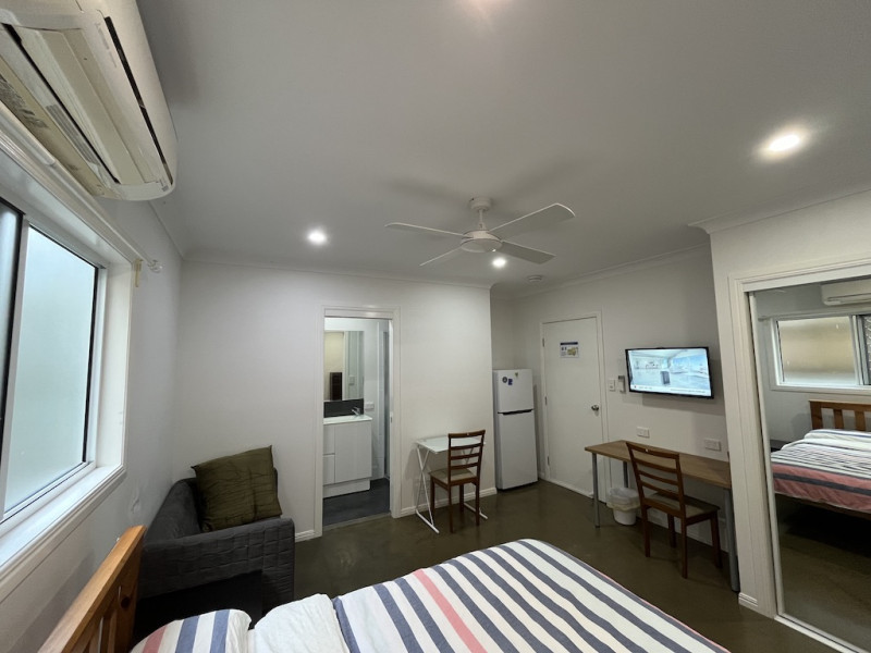 Big size En-suite room with own bathroom, build-in, double bed, desk, fridge. A/C,TV.