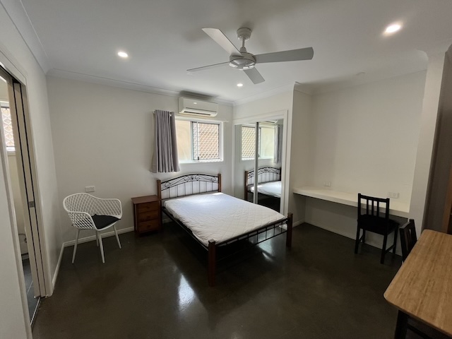 Big size En-suite room with own bathroom, build-in, double bed, desk, fridge. A/C,TV.