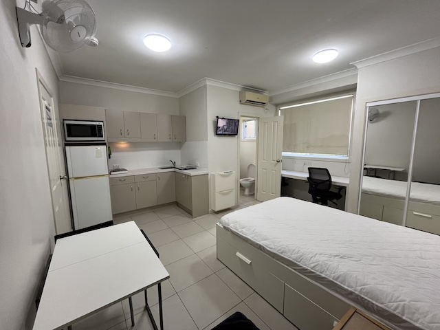 This Self-contained Studio flat is the integration with bathroom, kitchen, study and living area. and it is in the house dwelling style.