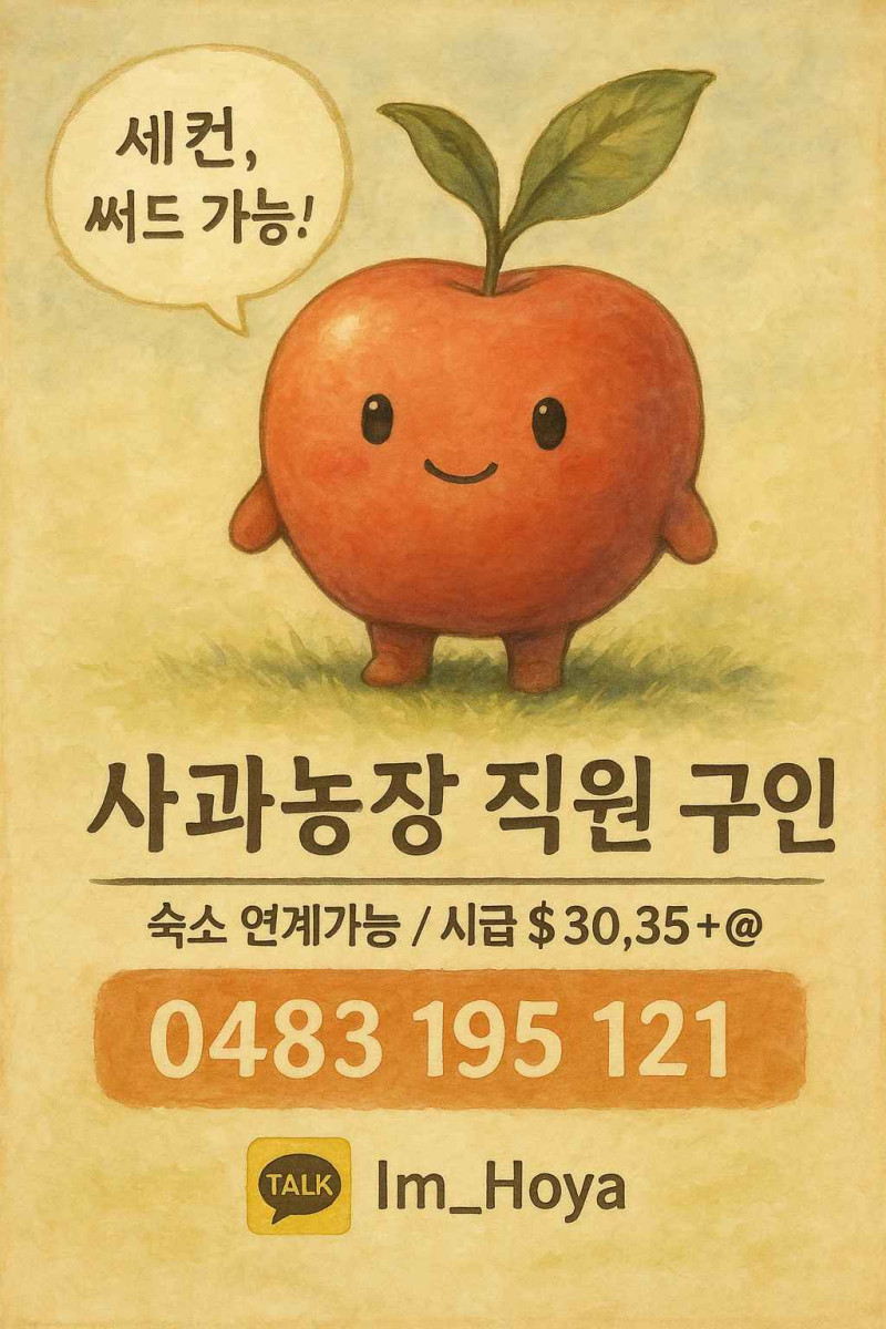 안녕하세요 사과 농장에서 여성 팩커을 구인하고 있습니다.