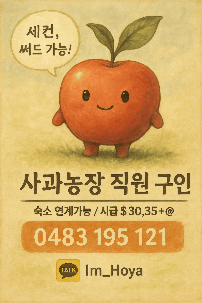 [스탠소프] 사과 팩킹장에서 직원을 구인합니다. (여2 남1)