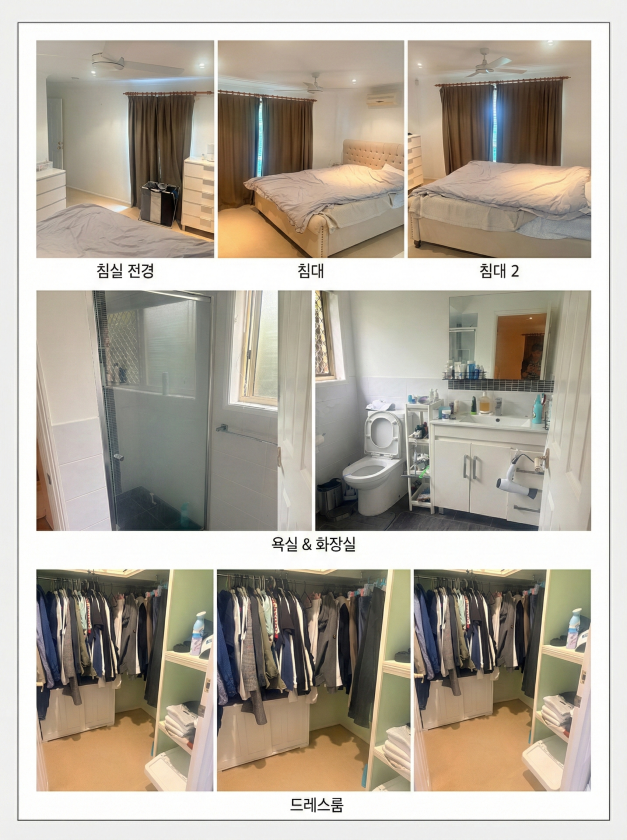 마스터룸: 개인 화장실(샤워실), 드레스룸(Walk-in robe) 포함
