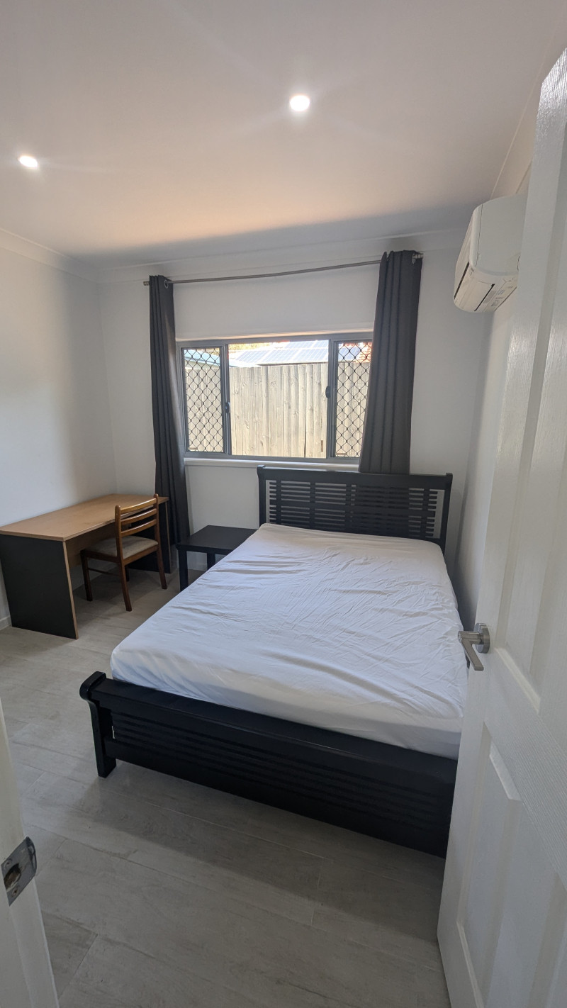Fully furnished with a new double bed and a desk.