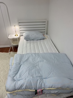 침대, 계절별 이불, 옷장, 헹거, 베드사이드 테이블, 베드사이드 램프, 러그, 책상, 책장 구비되어 있습니다.