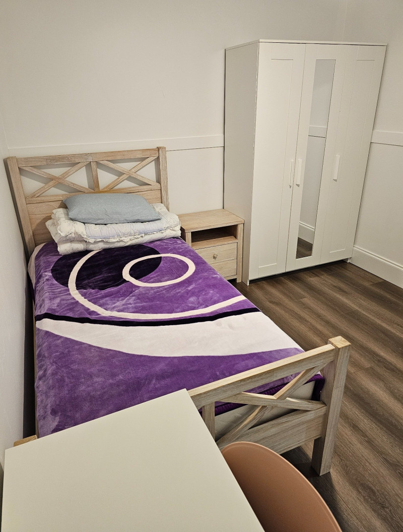 혼자 쓰실 방에 실링팬, 책상, 의자, 붙박이장 등 있습니다.