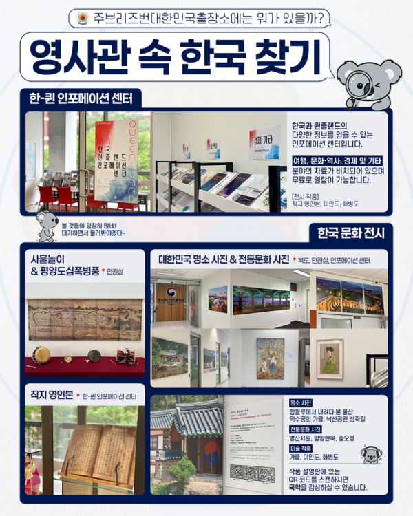 주브리즈번 출장소, 한-퀸즐랜드 인포메이션 센터(KQIC) 주브리즈번 대한민국 출장소는 한국과 퀸즐랜드 간의 교류를 지원하기 위해 공관 내에 「한-퀸즐랜드 인포메이션 센터(KQIC)」를 마련하였습니다.재외동포 여러분의 많은 관심과 이용 바랍니다.위치 :&nbs…