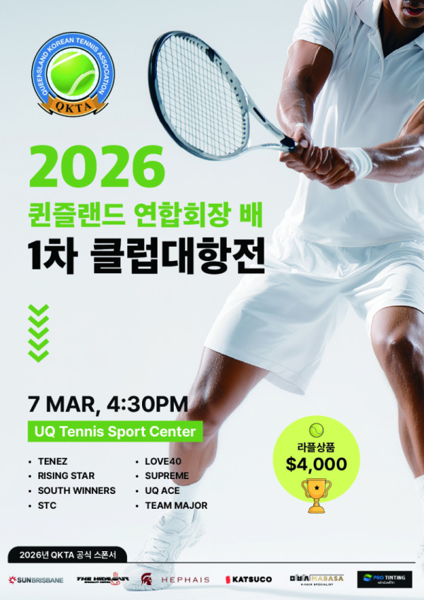 안녕하세요, 2026년 퀸즈랜드 테니스 연합회입니다.다가오는 3월 7일, Queensland 8개 클럽이 참가하는 제1차 연합 대항전이 개최됩니다.현재 퀸즈랜드에는 2026년 기준 8개 클럽, 약 200명의 등록 회원이 활동하고 있으며,매년 새로운 회원이 꾸준히 등록하…